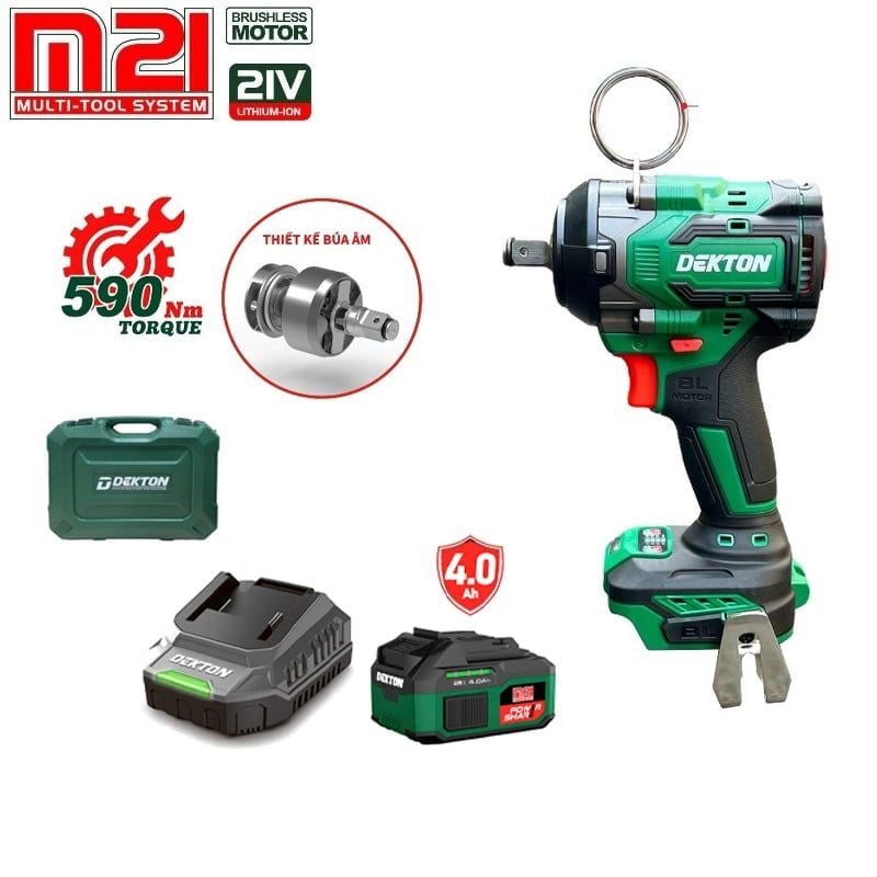Combo máy Siết Bu Lông Dùng Pin 21V DEKTON M21-IW590PLUS – Giải pháp mạnh mẽ cho công việc cơ khí & xây dựng