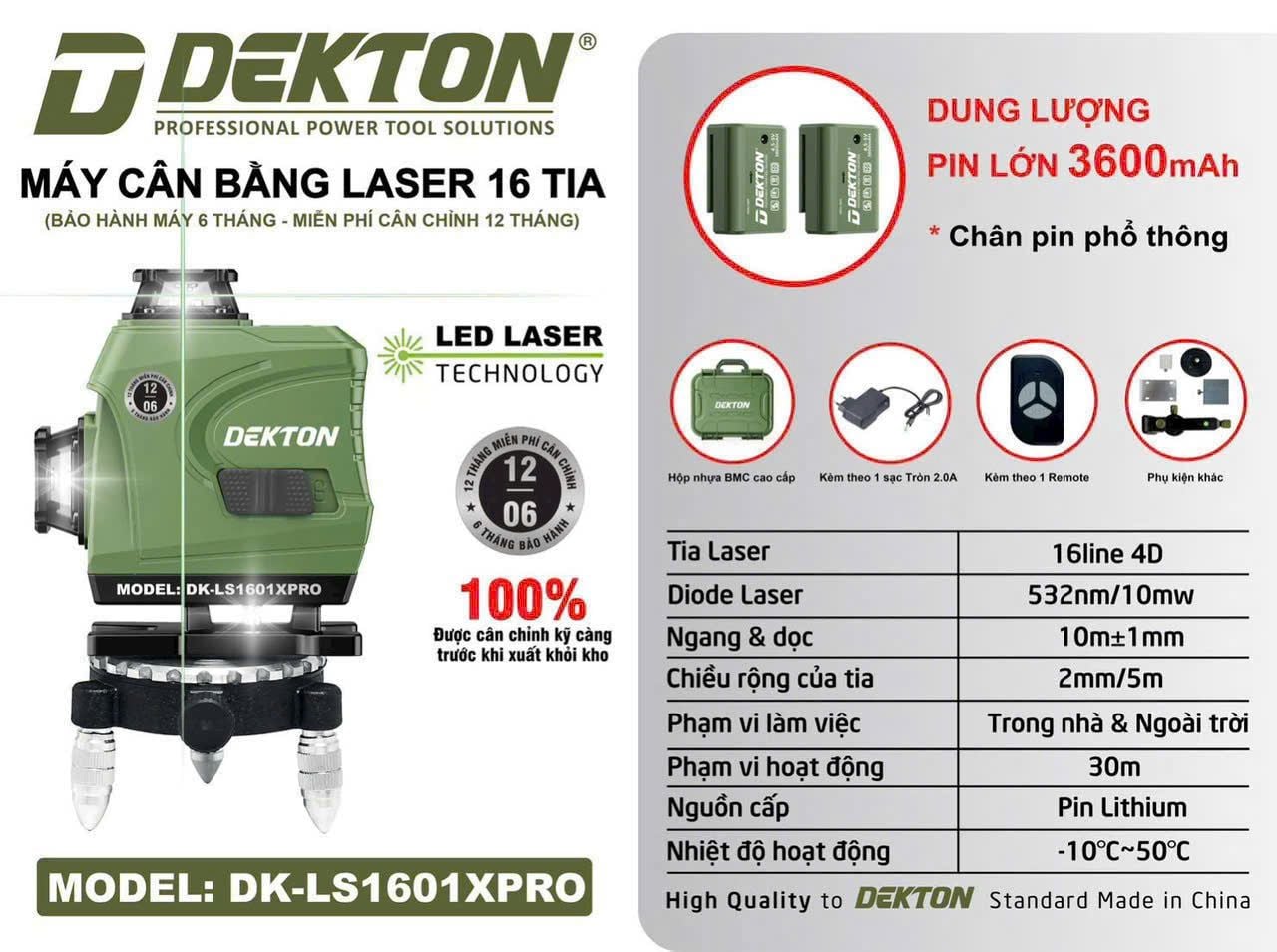 🔦 Máy Cân Bằng Laser 16 Tia Dekton DK-LS1601 – Tia Xanh Siêu Sáng, Độ Chính Xác Cao