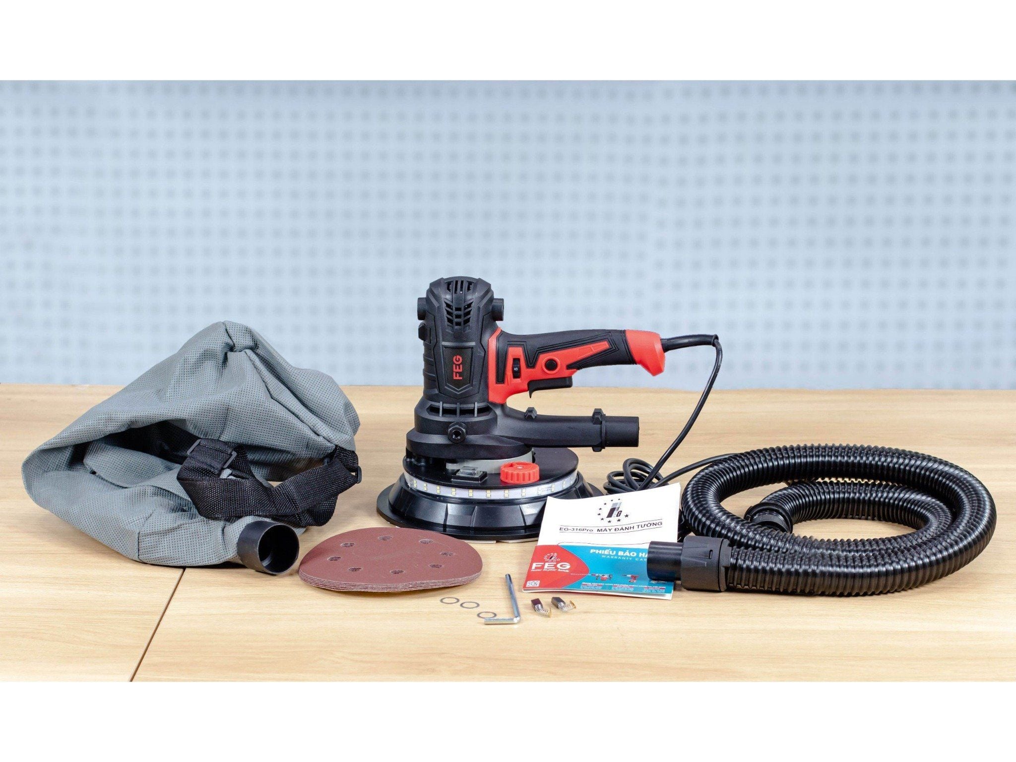 Máy chà tường FEG EG-316 Pro là lựa chọn chuyên nghiệp cho các thợ sơn, thợ xây và các công trình muốn đạt hiệu quả nhanh – gọn – sạch. Với thiết kế hiện đại, công suất mạnh mẽ và khả năng làm việc liên tục, thiết bị giúp chuẩn hóa bề mặt tường một cách nhanh chóng và chính xác trước khi sơn trang trí hoặc thi công lớp phủ.