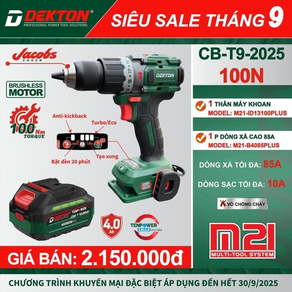 Từ khóa SEO gợi ý: máy khoan dekton cb-t9-2025, máy khoan vặn vít dekton, máy khoan động cơ brushless, máy khoan pin 100Nm, máy khoan dekton giá rẻ, máy khoan chính hãng tại HCM, dụng cụ điện cầm tay Dekton