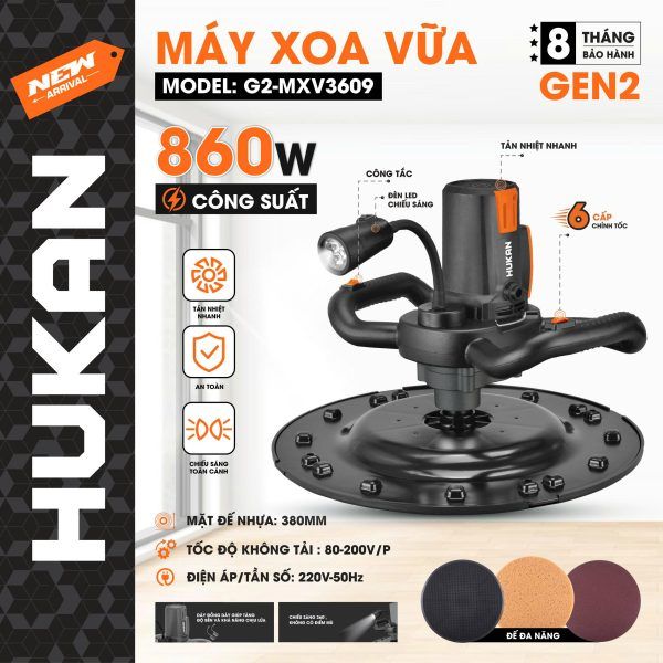 Máy xoa vữa GEN 2 G2‑MXV3609 là thiết bị chuyên dụng, được thiết kế dành cho giai đoạn hoàn thiện bề mặt tường, trần và nền. Với công suất mạnh mẽ, tốc độ điều chỉnh linh hoạt và đế xoa lớn, sản phẩm giúp tiết kiệm thời gian thi công và nâng cao chất lượng hoàn thiện.