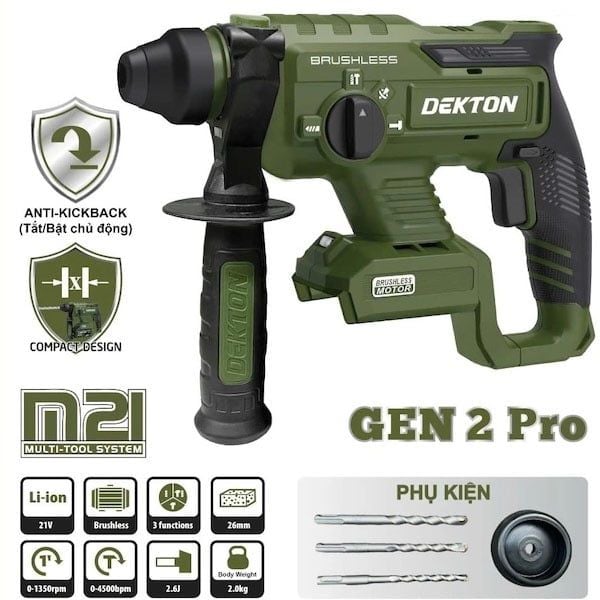 🔨 Máy khoan bê tông dùng pin 21V Dekton M21-RH2603XCP – Mạnh mẽ, bền bỉ, chính hãng