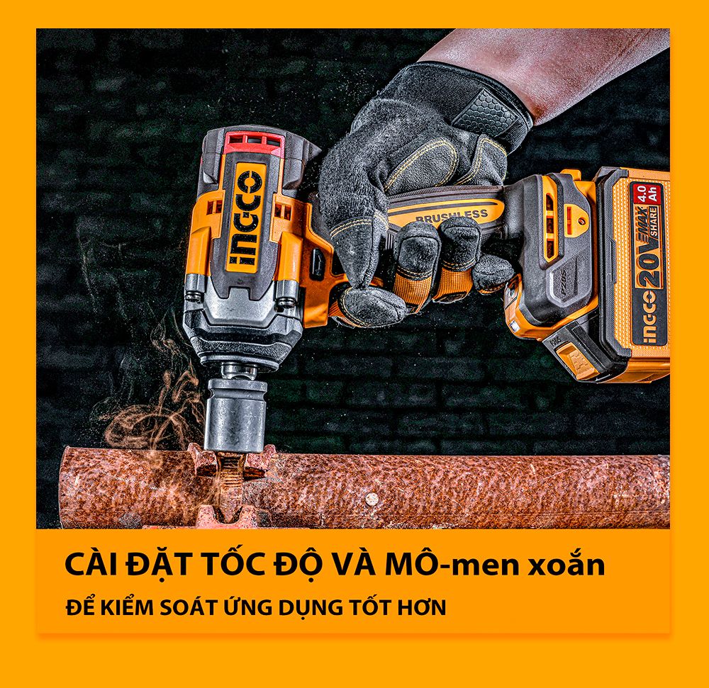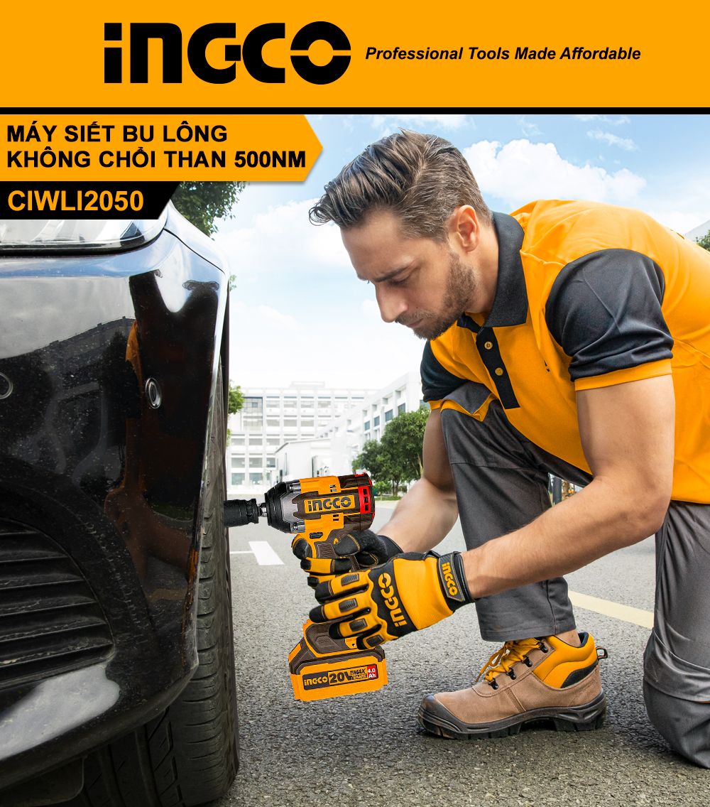 Bạn đang tìm máy siết bu lông pin mạnh mẽ, bền bỉ, dùng cho gara, công trình và sửa chữa chuyên nghiệp? 👉 INGCO 20V Brushless Impact Wrench chính là lựa chọn hoàn hảo với động cơ không chổi than, lực siết 500Nm, kèm 2 pin 4.0Ah cho hiệu suất làm việc vượt trội.